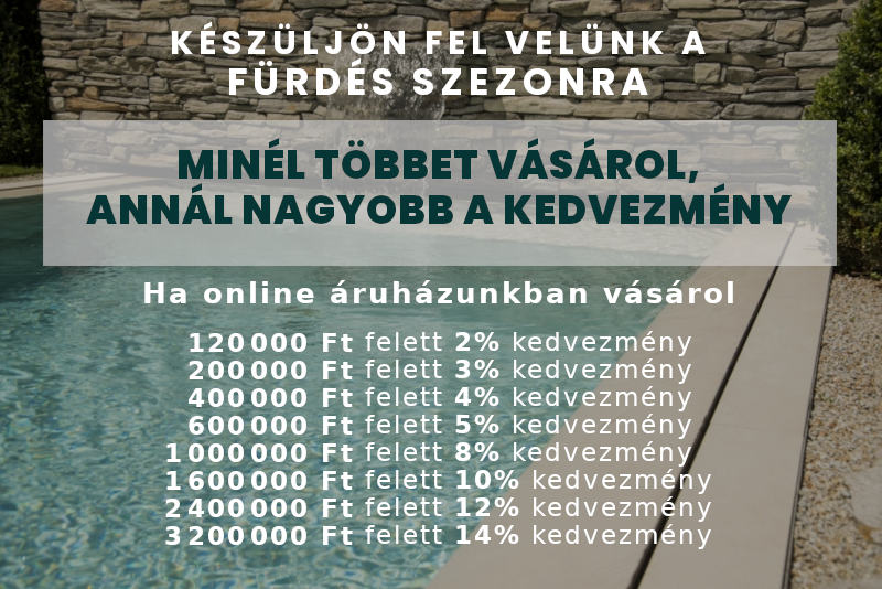 * A kedvezmény nem vonatkozik a Compass medencékre és medencetakarókra. Köszönjük a megértését.
