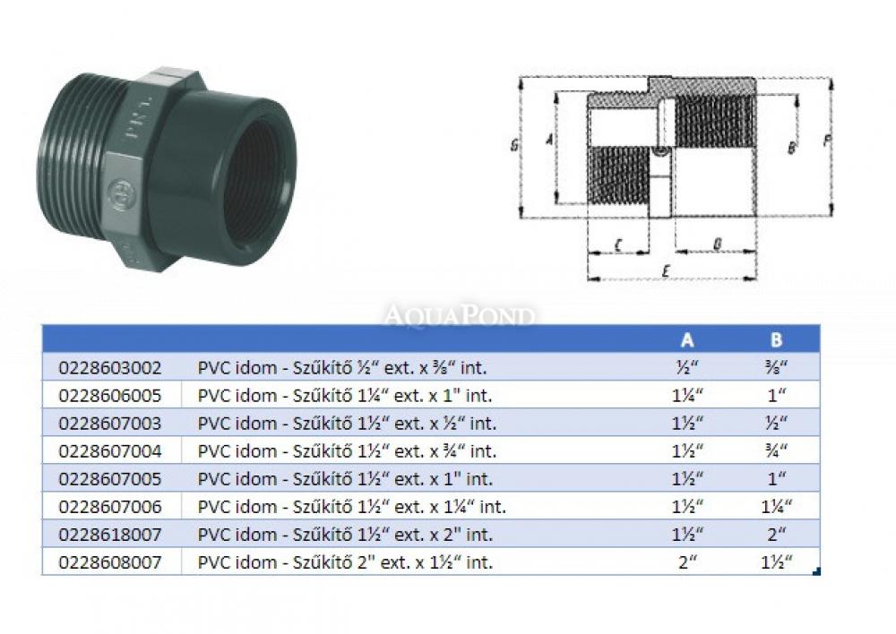 PVC idom - Szűkítő 1 1/2“ ext. x 3/4“ int.