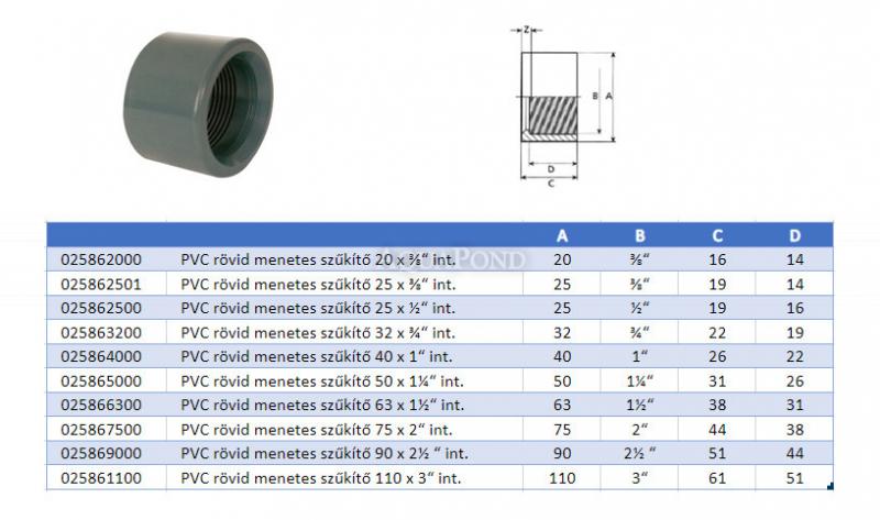 • PVC idom - Rövid menetes szűkítő 32 x 3/4“ int.
