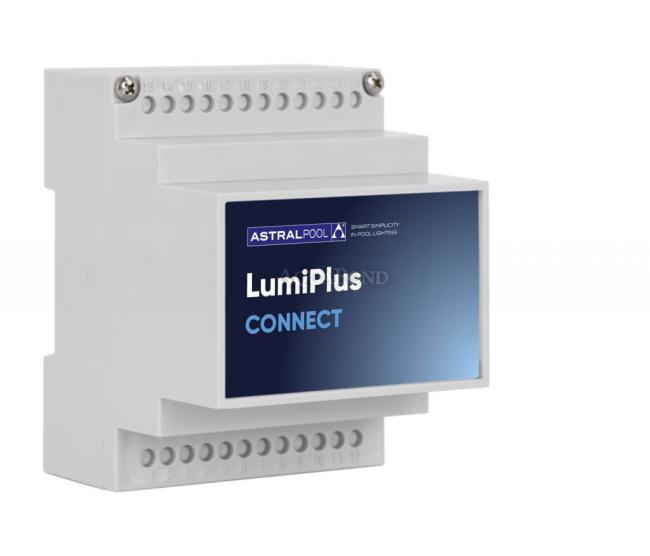 A LumiPlus Connect vezérlő lehetővé teszi a világítás teljes vezérlését a Fluidra Pool alkalmazáson keresztül, és a világítást a többi csatlakoztatott Fluidra eszközzel is összekapcsolja, így teljes körű irányítást biztosítva a medence felett.