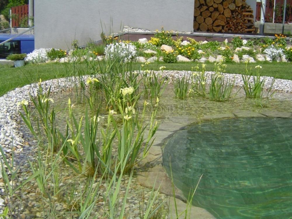 2. szűrőzóna – a biofilter, sekély (0.2 -0.3m) vizinövényekkel kiültetett rész, a víz minőségét biztosítja , a vizfelület 20 %-át kell hogy alkossa,