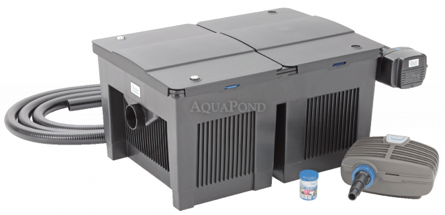 Nagy telljesítményű biomechanikus átfolyós szűrőberendezés, több kamrájának köszönhetően megszabadítja tavunkat mindennemű úszó algától, fennmaradó tápláléktól, így bebíztosítva a hosszantartó egészséges víz állapotat. Innovatív szűrű szett beépített 36 W-os UV sterilizátorral. Oase A Biosmart Set 36000 és az Oase 11500-as szivattyú megszabadítja a vizet az úszó algáktol, szennyeződésektől, eltávolítja a megmaradt haleledelt, mindezek által bebiztosítja a víz tisztaságátát. Átfolyós szürőberendezés, mely tartalmaz: hőmérőt, csapot a szennyeződés kiengedésére.