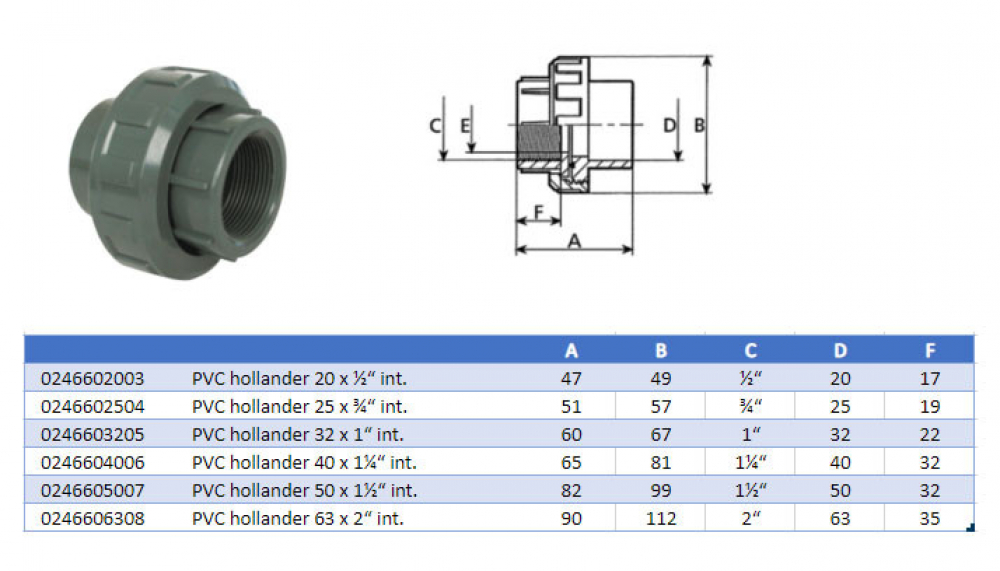 • PVC Belső menetes hollander 50 x 1 1/2“ int., DN=50 mm x 1 1/2“, ragasztás / belső menet