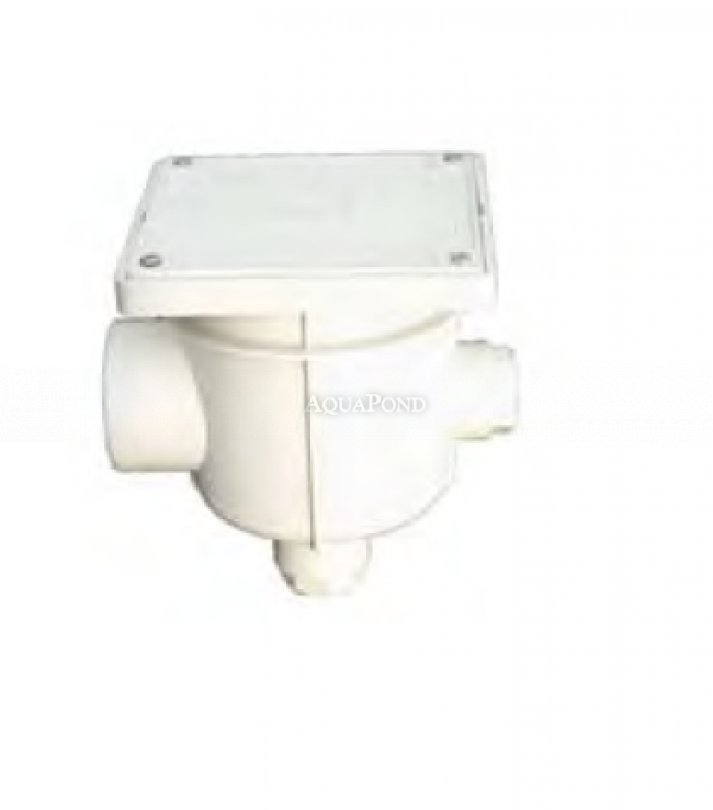 Fehér ABS műanyagból, 3x csatlakozás 3/4" menettel, felső fedél önmetsző csavarokkal rögzítve. A vízálló doboz a medence mellett is betonozható. A fedél felpattintható, két biztonsági zár védi. A transzformátorból származó tápkábel és a lámpából származó kábel csatlakoztatására szolgál.