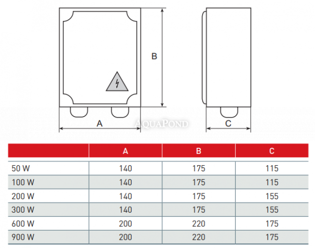 Transzformátor halogén és LED lámpákhoz. Víz alatti lámpákhoz 300 W-ig. A transzformátorok speciális hőálló műanyagból készült dobozban vannak elhelyezve - IP 65. Több lámpa és egy transzformátor esetén az összes lámpát egy kikapcsolóval kell vezérelni.