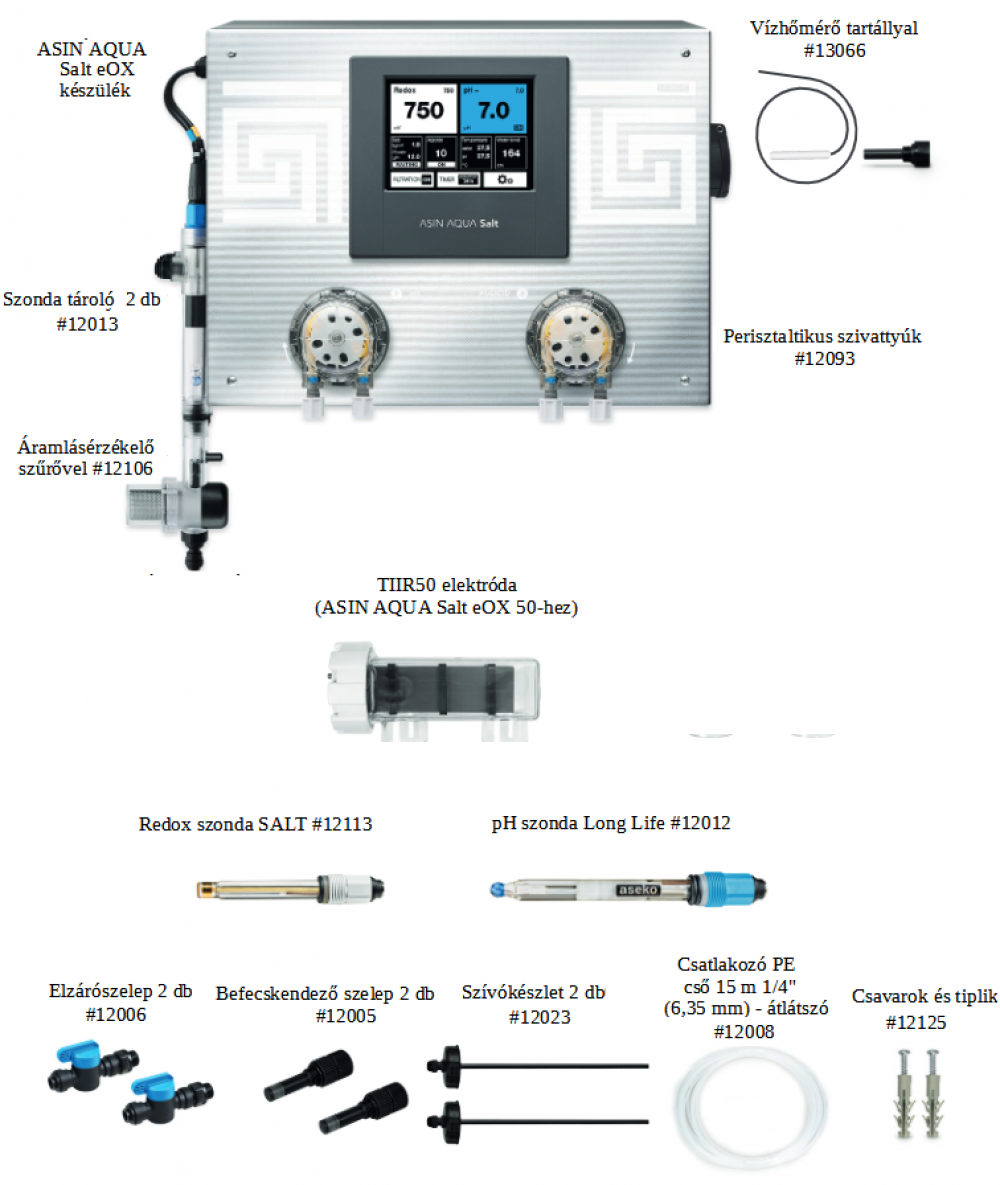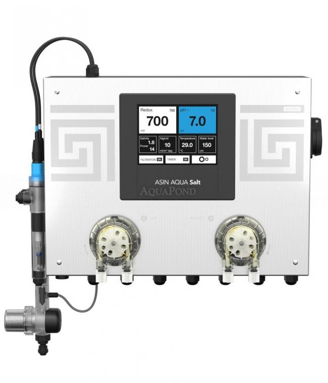 Az ASIN AQUA Salt eOX intelligens funkciói lehetővé teszik a medence teljes automatizálását. Az ASEKO Cloud Services (aseko.cloud) és az ASEKO Live smart alkalmazás online kapcsolata áttekintést nyújt a medence állapotáról bárhonnan, ahol van internetkapcsolat.