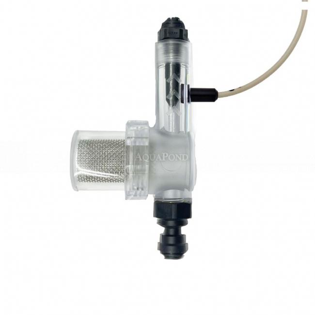 Elektronikus vezérlő áramlásmérő szűrővel ASIN Aqua készülékekhez való csatlakoztatáshoz. Lehetővé teszi a mért víz szondákhoz való áramlásának elektronikus vezérlését. Ha a mért víz mennyisége nem elegendő elektronikus jelet küld az ASIN Aqua-nak. Ezzel elkerülhető a hibás mérés és adagolás.
