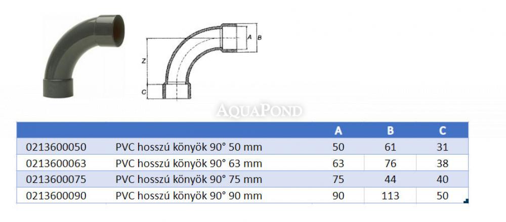 • PVC hosszú könyök 90° DN=63 mm, d=76 mm, ragasztás / ragasztás
