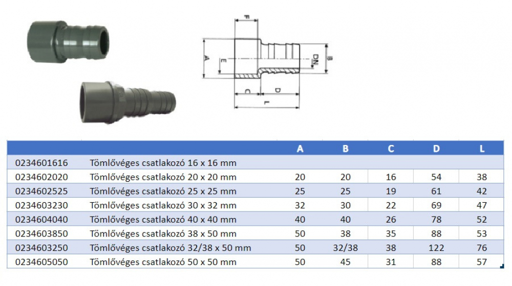 PVC idom - Tömlővéges csatlakozó Bővebben