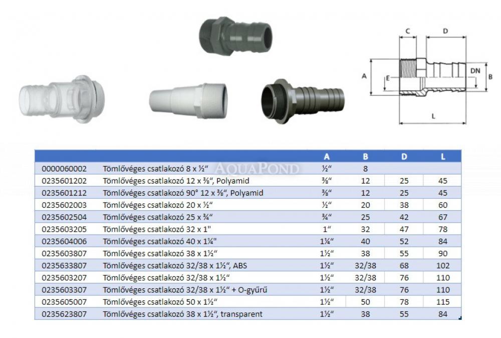 • PVC Tömlővéges csatlakozó 40 x 1 1/4'', d=40 mm x 1 1/4'', külső menet