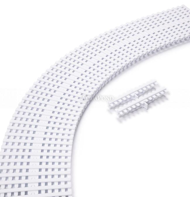 Túlfolyó rácsok - kétoldalas -feszített víztükrű privát és közösségi, közüzemi medencékhez. EN 1345-1 (8mm) normának megfelelő. Egy méter hosszúsághoz 45 elemre van szükség. Az ár 1 db vonatkozik.